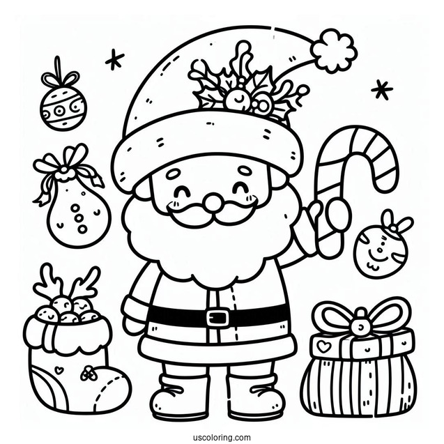 Kawaii Themed Santa Merry Christmas Coloring Picture